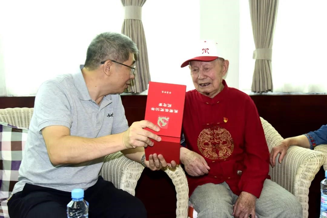 揭小健到91短视频 走访慰问获得“光荣在党50年”纪念章老党员