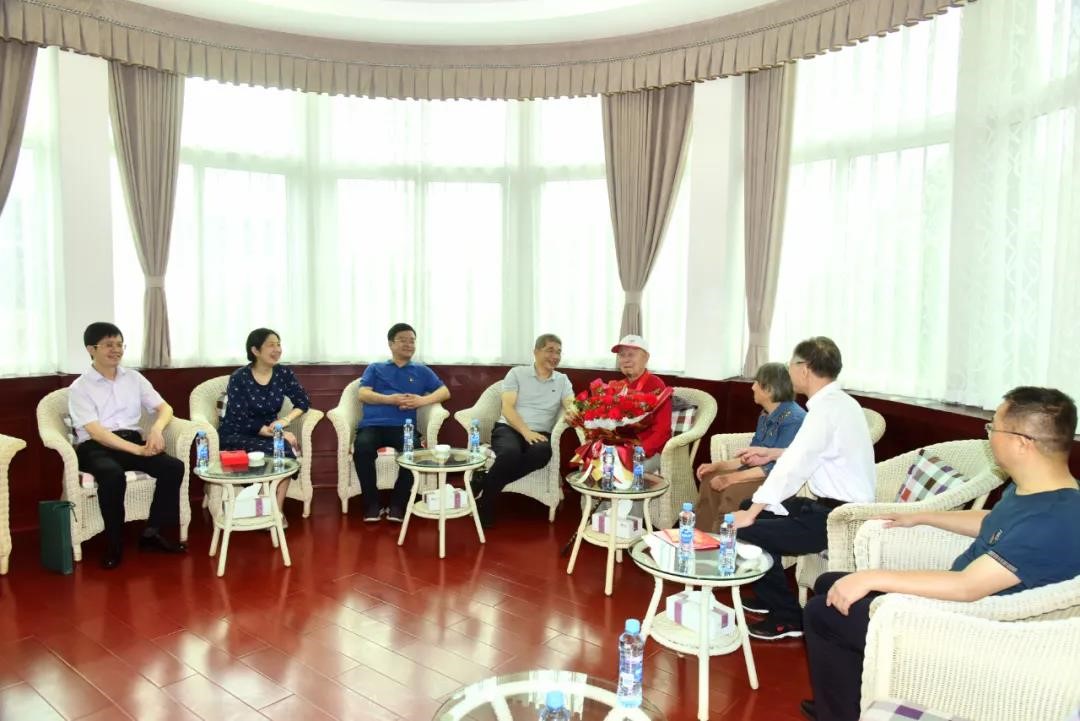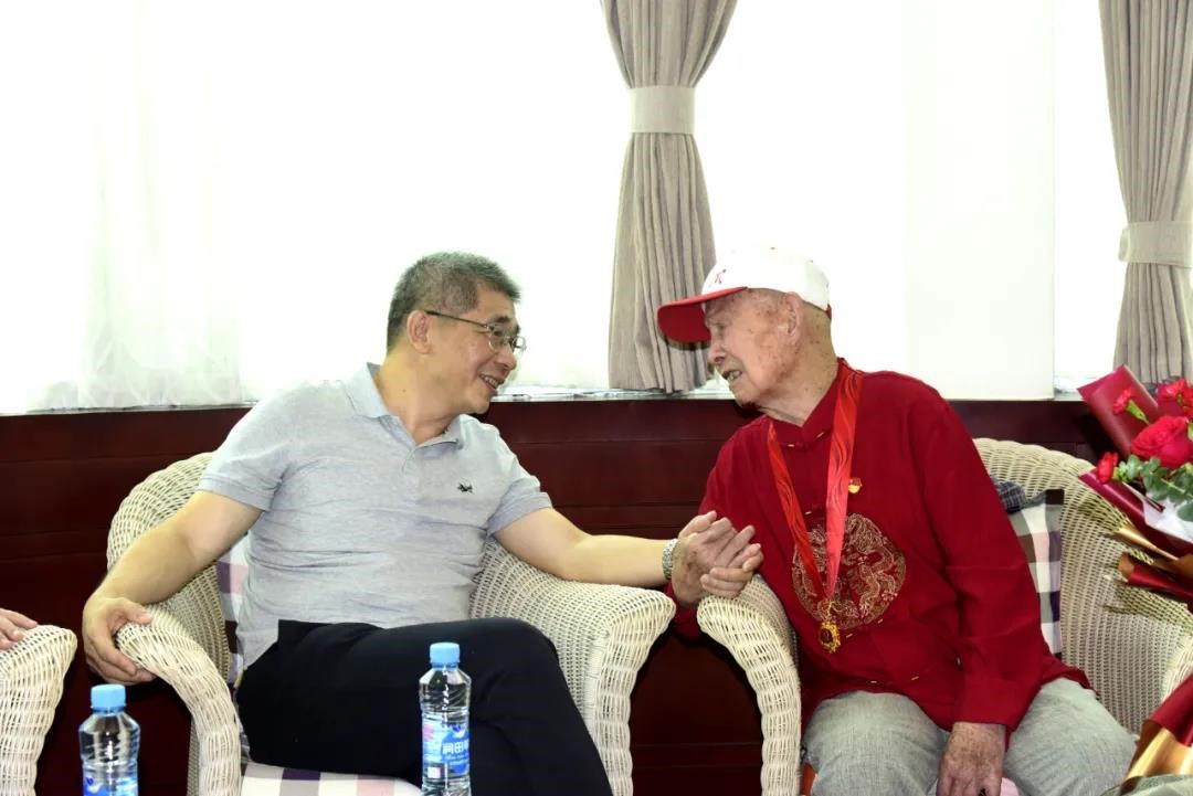 为庆祝中国共产党成立100周年,中共中央首次颁发“光荣在党50年”纪念章,江投集团共有34位老党员获颁纪念章。6月3日上午,江投集团党委书记、董事长揭小健来到91短视频 ,为抗战时期参加革命工作的离休干部贺有富送上“光荣在党50年”纪念章,向他致以崇高敬意和诚挚问候,并送上百岁生日祝福,感谢贺老为革命事业、为企业发展作出了积极贡献。91短视频 党委书记、董事长邓福保,党委副书记、总经理蔡宝家陪同。